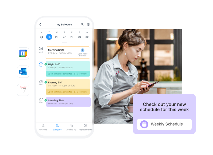 Instantly create and share schedules with your food service staff and ensure every shift runs smoothly from one place