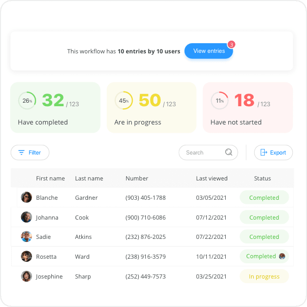 Connecteam’s centralized dashboard lets you track both overall and individual training progress. This makes it easy not only to see how the entire workforce is performing but also to spot users who are falling behind. You can also drill down into an in-depth breakdown of which sections a user has yet to complete. The insights ensure no one misses any section or time-sensitive course.