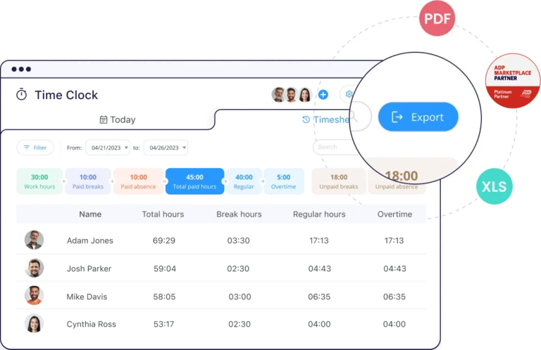 With Connecteam’s integration for ADP, you can digitize and automate your entire payroll process. With auto-generated digital timesheets, smoother pay runs, and detailed reports, payroll just got a whole lot easier.